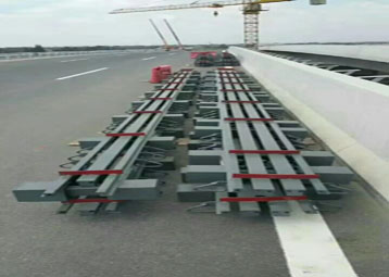 橋梁伸縮縫:指的是為滿足橋面變形的要求,通常在兩梁端之間、梁端與橋臺之間或橋梁的鉸接位置上設(shè)置伸縮縫。要求伸縮縫在平行、垂直于橋梁軸線的兩個方向,均能自由伸縮,牢固可靠,車輛行駛過時應(yīng)平順、無突跳與噪聲;要能防止雨水和垃圾泥土滲入阻塞;安裝、檢查、養(yǎng)護(hù)、消除污物都要簡易方便。 在設(shè)置伸縮縫處,欄桿與橋面鋪裝都要斷開。